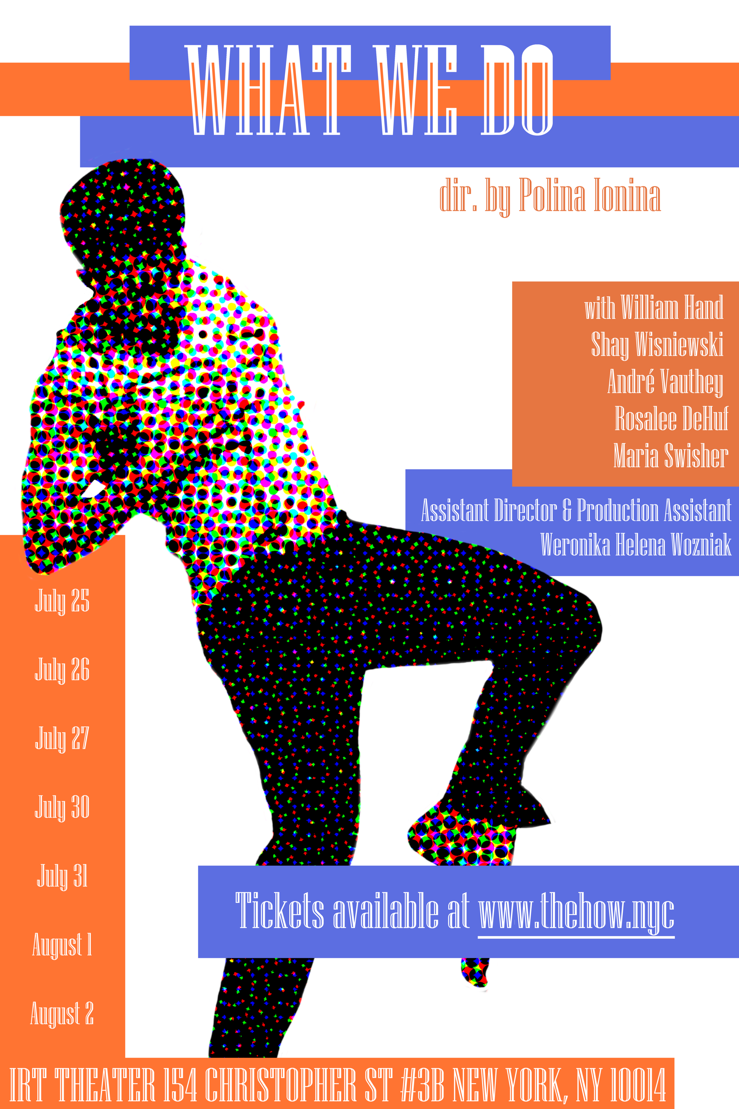 Having just finished my tour in NYC and Italy as Doug in The Way We Get Byby Neil Labute, I am pleased to present to you my new upcoming performance: a movement piece that explores the self, the ego, alone or facing others directed by the amazing Polina Ionina at the IRT Theater.
